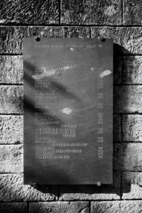 Der Auflistung verstorbener Bergmänner folgt eine Tafel auf der die Schließungsdaten einiger Minen vermerkt sind. Wie der nächste Gedenkstein gehört sie zu den vierundzwanzig Originaltafeln die 1957 in Auftrag gegeben wurden. Um zu gewährleisten, dass alle Steintafeln welche die Namen von Bergmännern tragen in einer durchgehenden Reihe stehen, wurden diese beiden Steine später versetzt. Die letzte Tafel besteht aus der Darstellung eines verlassenen Grubenwagens vor einem Mineneingang. Betrachtet man sie in Verbindung mit der allerersten Tafel der Reihe, fällt vor allem die Abwesenheit des unbekannten Arbeiters auf, der zuvor dabei war den Wagen zu beladen. Sein Fehlen wird so zu einem kraftvollen Symbol für Verlust und die Unsichtbarkeit individueller Schicksale in der Geschichte.