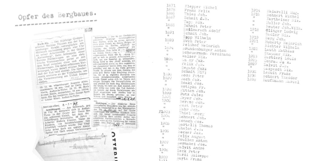 The first ‘Committee for the Construction of a Miners’ Memorial’ consisted of nine people. Among them were the mayor and the municipal secretary of Kayl, as well as several miners and Jos Dupong himself.